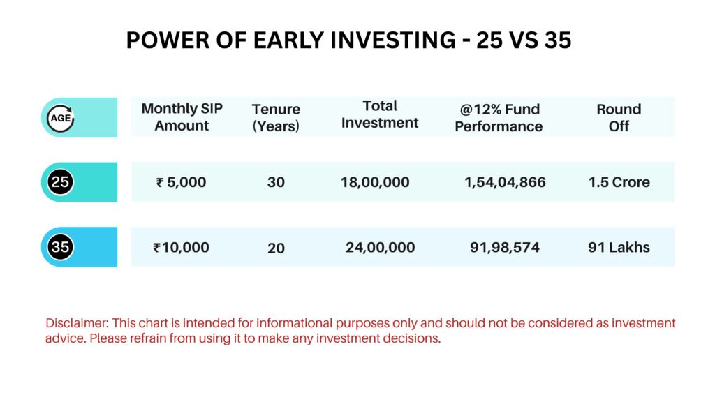 - Starting your investment journey early is one of the most powerful yet overlooked financial decisions. Consider two people: one begins investing ₹5,000 monthly at age 25, while the other starts at age 35 but doubles the amount to ₹10,000 per month.